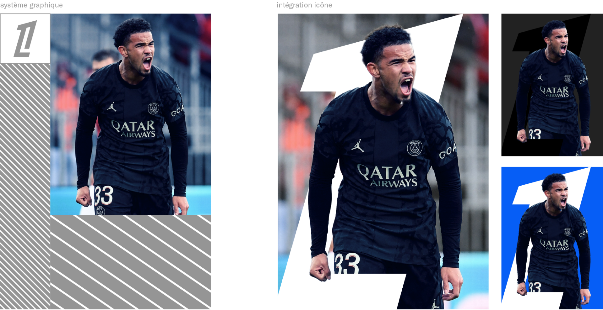 Notre icône modulaire existe en interaction avec des séquences vidéos lors d’animations de joueurs et de matchs. Elle doit être en harmonie avec le visuel, pour procurer de l’authenticité et accentuer les performances ou émotions des joueurs.