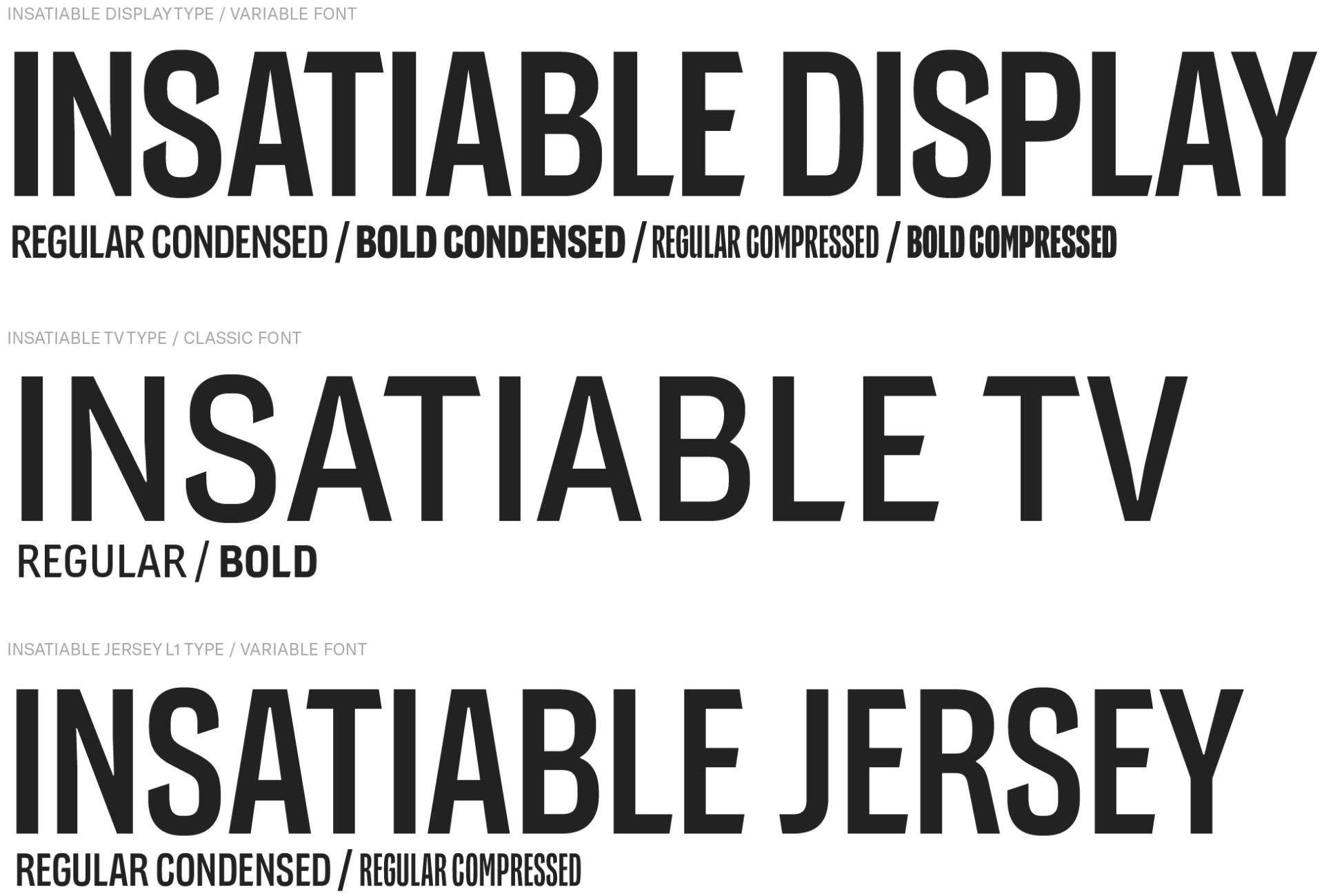 Les typographies Insatiable Display et Insatiable Jersey sont