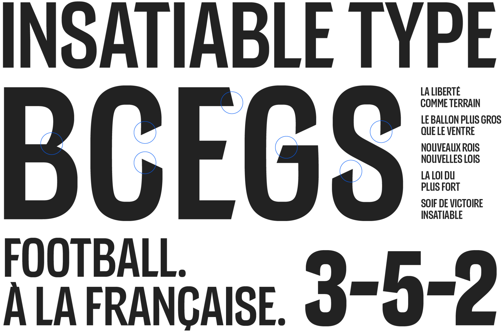 La typographie Insatiable est une police personnalisée conçue sur-mesure. Elle est utilisée comme typographie principale, designée pour une visibilité accrue. C’est un élément clé pour renforcer notre identité et incarner le football à la française.